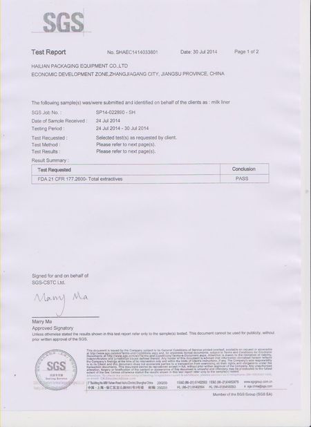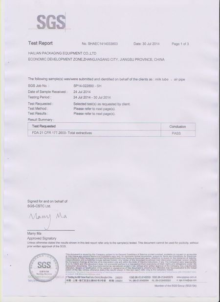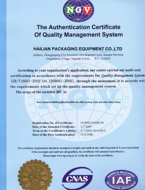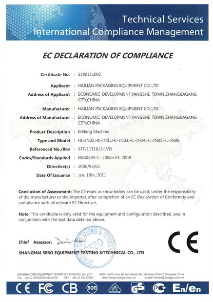 1. Unsere Melkmaschine sind CER certifictae geführt worden.